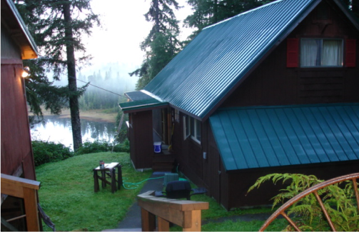 The house is 3 bedrooms, 1 & 1 1/2 baths that has 7 queen sized beds with a cot overflow.. There is a fully equipped kitchen and laundry facilities. The view from the back deck overlooks a 9 acre salmon spawning lake. The house sits by itself, on a ridge, at the end of Ridge Road. The Wrangle Tongass National Forest is the side yard.